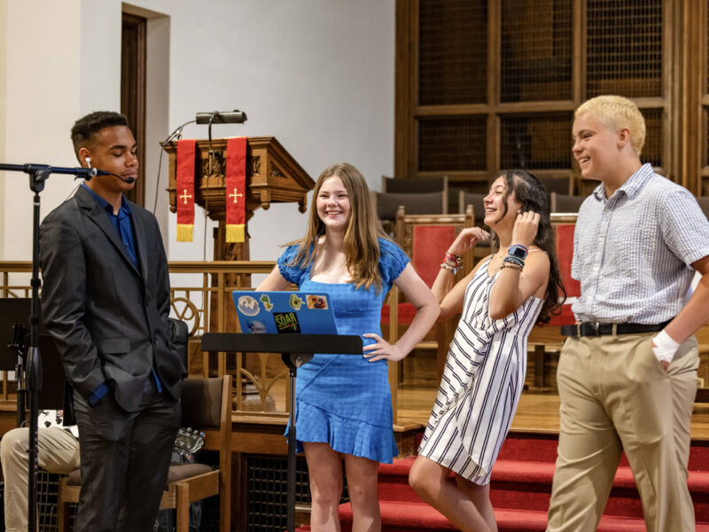 A Neighborhood Summer focuses on the theme of neighborhood and being neighbors, and within that overarching theme, the services cover three areas: arts, ritual, and service. Each service offers creative ways to enourage participation, either through discussion or through activities like writing poems, making sandwiches, and evaluating your church building’s potential for neighborliness. We found A Neighborhood Summer to be meaningful in many ways beyond the content of the worship services: our increased vulnerability with one another, the freedom to break outside our usual worship template, our intergenerational experiences, collaboration and creativity as a staff team, and much more.